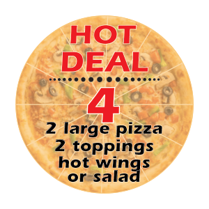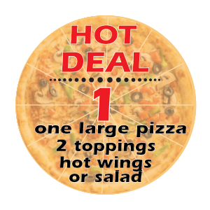 Super Hot Deal #1 One Large w/ 2 Toppings, Hot Wings or Salad