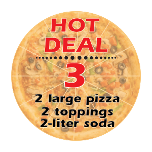 Super Hot Deal #3 Two Large Pizza w/ 2 toppings, 2 Liter Soda