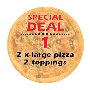 Enjoy our Two X-Large Pizzas with Three Toppings Special – the perfect choice for gatherings, family dinners, or just indulging in a pizza feast! Customize each pizza with three toppings of your choice, ensuring every bite is bursting with flavor. Ideal for sharing, this deal is both delicious and a great value