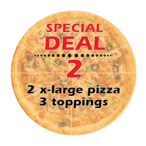 Special Deal #2 Two X-Large Pizza w/ 3 Toppings
