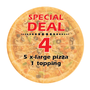 Special Deal #4 Five X-Large Pizza w/ 1 Topping